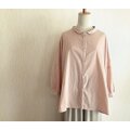 小さな台襟つきの衿は首元から離れているので、窮屈さも無く、首を華奢に見せてくれます。