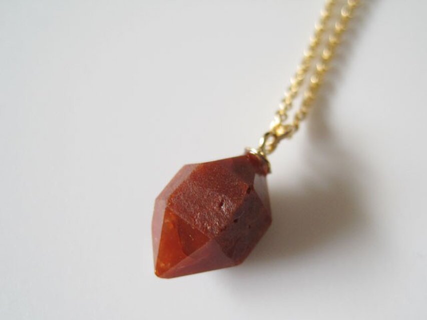 赤水晶、または赤鉄水晶ともよばれるレッドクォーツの結晶をネックレスにしました。