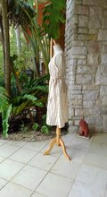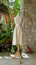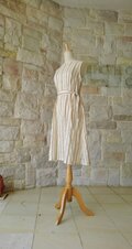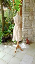 (M)南仏ニース気分♪サンドベージュ×ゴールド ストライプ リゾートマダム ワンピース
