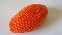 糸はパッと明るいオレンジ色、ビーズもオレンジ色の光沢を放つキラキラビーズを一粒ずつ編み込んでいきました。
