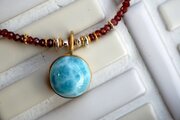 ラリマートップは、ガーネットのネックレスから外すことができます。お手持ちのチェーンなどに通してお使いいただくことが可能ですので便利ですよ♪