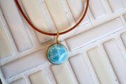 今回はナチュラルカラーの革ひも(1.5ミリ)を合わせました。美しいラリマーに飾らない革ひもを合わせてみるのも贅沢な組み合わせかと思います。