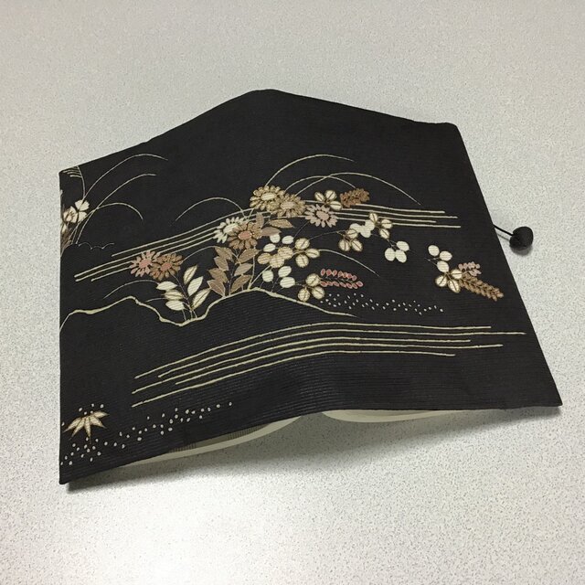 地色はチャコールグレー、、、もう秋の草花を取り入れ、一足早い装いを演出しています。