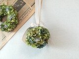ブルー、グリーンなどの味わいのある色合いのあじさいをアレンジしたナチュラルなボールリースです。