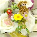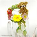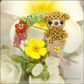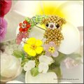 ビーズアクササリー,ビーズブレスレット,ビーズ,ハンドメイド,手作り,ビーズドール,くまさん,ブローチ,チェコビーズ,くまさん,ゴールド,熊,花