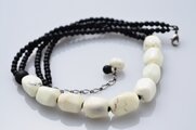 首もとのお洒落を演出する夏のモノトーンファッションのアクセントになるネックレスです。
