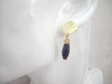 ラピスラズリのしずくと真鍮メタルのモダンピアス サージカルスチールポスト