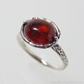 深みのある赤から、ブラウンへのグラデーションが印象的なガーネットのリング。