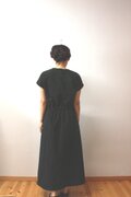 ゆったりしたワンピースですがてウエストが太ゴム仕様になっているので太ウエストがほっそりして見える、女性らしいラインを作ってくれるワンピースです。