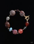 乾いた夏の雰囲気を持つ麻のドレスに、ノースリーブのトップスに合わせて。美しいマチエールを持つ天然石やレアになった天然石など、楽しく着けていただけるブレスレットになりました。