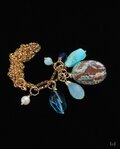 小さなブルーサファイアからロンドンブルートパーズ、あこやパールも加えました。それぞれの素材をブーケのように束ねて作った、この世に一点だけのアクセサリーです。LeJのストックから、長い時間をかけて集まって来た素材たちを使いました。天然石の楽しさを再発見していただけそうです。