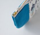 ・表面の白地に紺と水色の羽根柄は、アメリカ製・綿100%のキャンバス地。トルコブルーの無地は、日本製・8号帆布。
