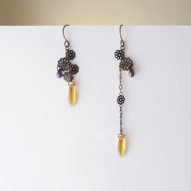 チェコガラスビーズピアス「君、灯ル」 | 軽量快適アシンメトリーデザイン