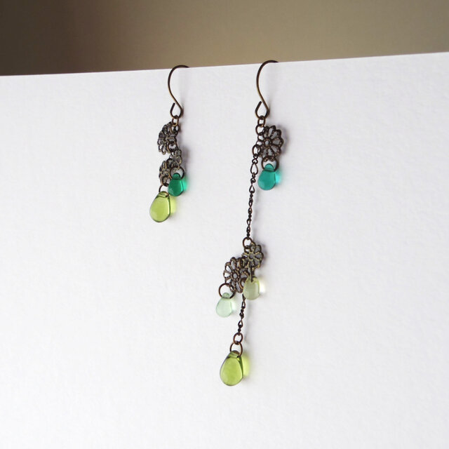 チェコガラスビーズピアス「ひらり、つや」 | 軽量快適アシンメトリーデザイン