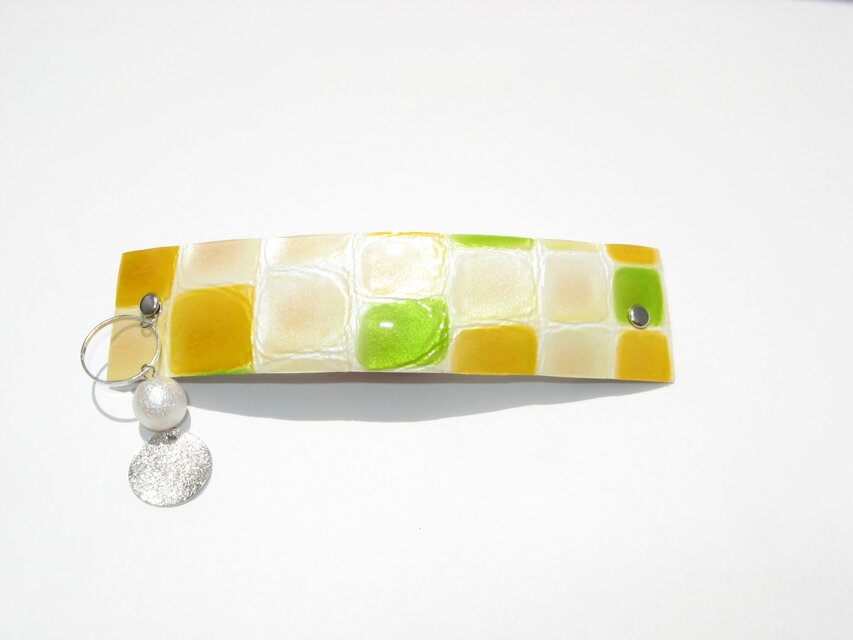 ステンドグラスのように輝く希少な本革でバレッタを作りました❣