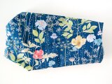 生地の色は地の色が、ネイビー(グリーンっぽい)、花の色にカスタードイエロー、ライトブルー、ライトパープルなど、葉の色にライトグリーンなどが使われています。