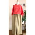 ストレッチサージのギャザーがたっぷりと入ったスカートに見えるワイドパンツです。