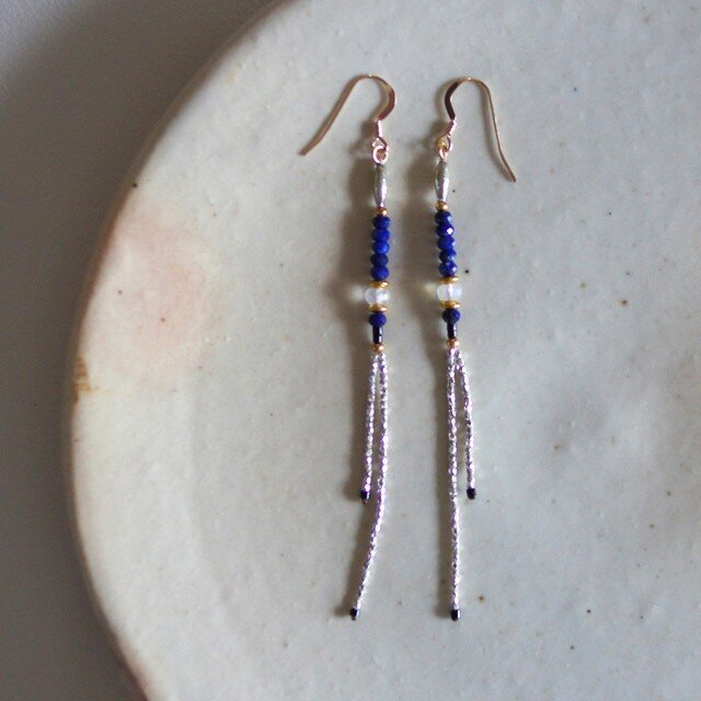 2種類のレインボームーンストーンの美しさ、間に挟み込まれた金色のヴェルメイユ、キラキラと繊細に輝くシルバーの蝋引き糸、そこに編み込まれた小さなパール、どれもとても素敵です。 軽くて着け心地が良いし、長さ調節もできるし、留め具が外れて落とす心配もない。季節を問わず愛用してしまいそうです。 素敵な作品をありがとうございます!