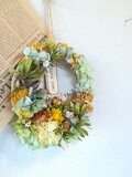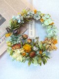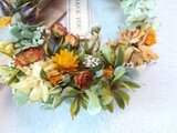 オレンジ色のミニバラと、可憐なSA デージーなどをアレンジした動きのある可愛らしいナチュラルなリースです。