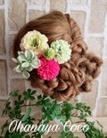結婚式の前撮り用にお願いしました。 無事に前撮りが完了したので、感想書かせて頂きます。 自分では花の色合いや種類を決めることができず、色打掛の写真を元に作って頂きました。 完成品は依頼した通り、上品で存在感のある綺麗な花飾りでした。 実際に色打掛を着てヘアメイクさんに付けてもらったら、着物とピッタリ! 大大大満足です! お願いして本当に良かったです。 ありがとうございました。