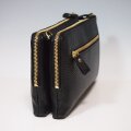 ★日本製★牛革★お財布ポシェット★ダブルファスナー★ショルダーバッグ★クロ色★ゴールドチェーン★