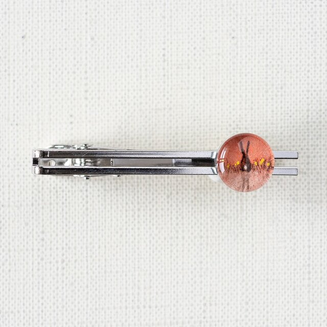 夕焼けうさぎを描いた絵を、樹脂で閉じ込めたネクタイピンです。