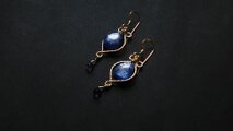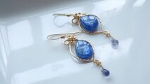 淡いブルーカラーが可愛らしいカイヤナイトと、小さな小さなアイオライトをグリッターワイヤーでデザインし、ピアスを作りました。(о´∀`о)