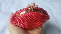 ビーズ編みで、ビーズがぎっしり詰まった手編みのコロンとしたがま口財布です。