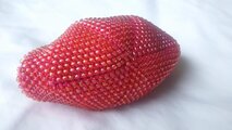 濃いピンクの糸に透明感のあるピンク色のビーズをふんだんに編み込み、がま口財布を作りました。ビーズ一粒ずつのぶつぶつ感が苺のつぶつぶのようで、苺をイメージした感じに仕上がりました。