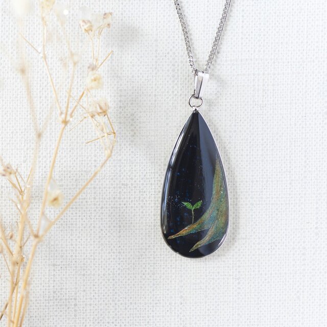 手描きのオリジナルイラストを樹脂で閉じ込めたペンダントトップです。