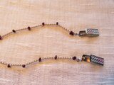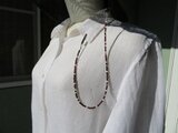 淡水パールの間に天然石のガーネットをを配した帽子クリップです。