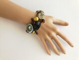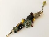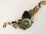 大小のボタンとアクリルパーツやガラスビーズなどを、ラメ糸でつなぎました。