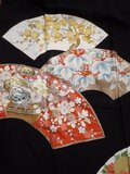 繊細で美しく、気品ある華々が扇に描かれながら奏で長れる、素敵なアンティーク着物をほどいて、画像デザインのフォーマルワンピースをお作りいたします。