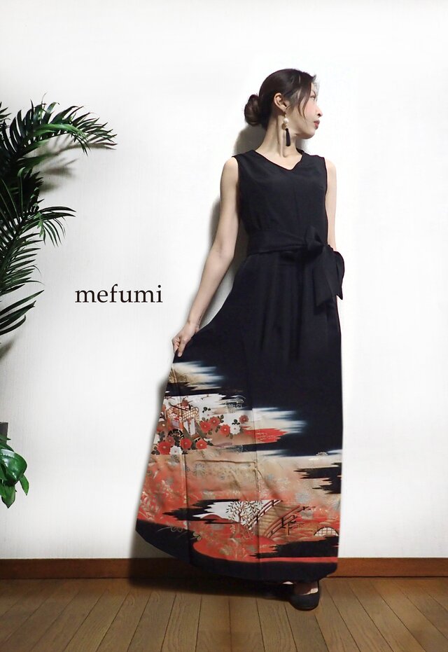 受注制作 ✳︎1点物 ✳︎ アンティーク 着物リメイク 正絹 フォーマル ロングワンピース 9号/11号/13号