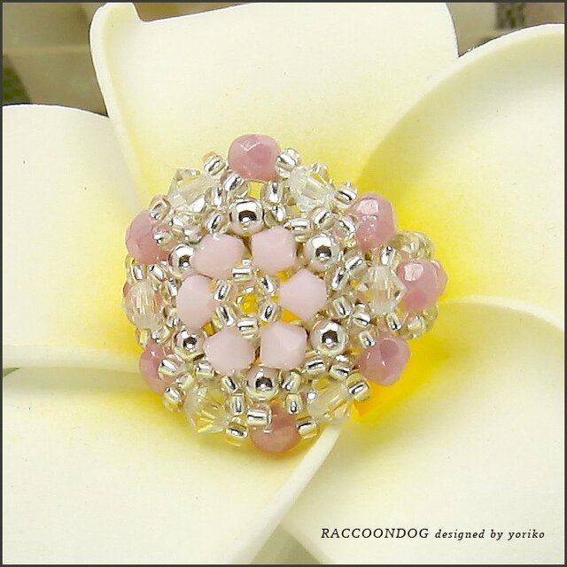 ビーズ,リング,コスチュームジュエリー,ビーズアクセサリー,チェコビーズ,ぴんく,スワロフスキー,パール,ピンク,花,花火