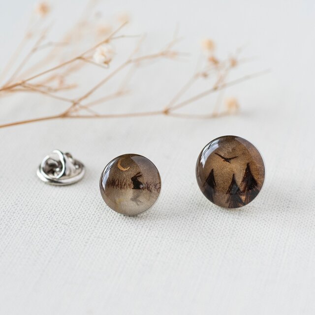黄昏の情景を描いた絵を、樹脂で閉じ込めたピンバッチです。
