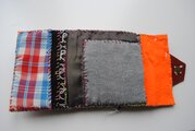 チェックの生地に違う素材の生地をパッチワークして。。