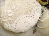 手刺繍レース、カットワークレース、デュシェスレースなど手の込んだレースを使った贅沢なポーチです