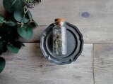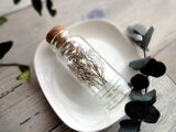 手のひらサイズのガラス瓶に、ドライフラワーを丁寧に詰め込みました。