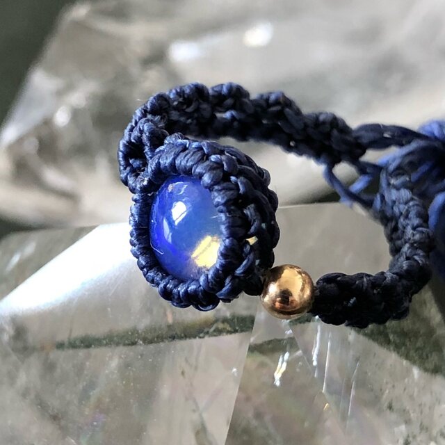 【マクラメ】〜 イロドリで遊ぶ〜指輪2✩✩プレシャスオパール