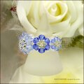 9月の誕生石カラーのスワロフスキーのサファイアで青花のリングを花編みにしてみました。