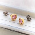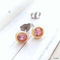 約4ミリのスワロフスキーチャトンをやさしいエッジの専用石座付きピアス金具にセットしました。