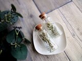 手のひらサイズのガラス瓶に、ドライフラワーを丁寧に詰め込みました。