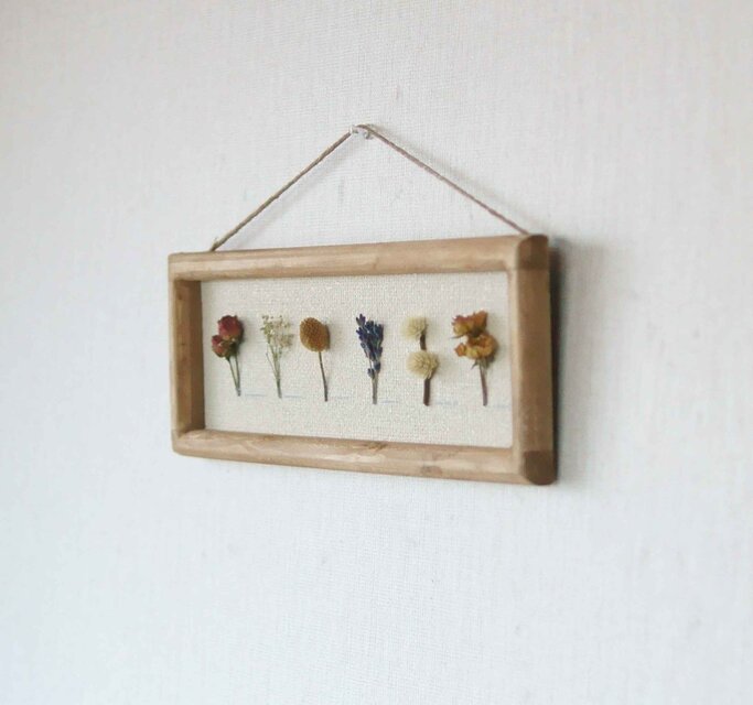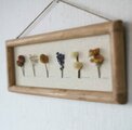 アンティーク調に仕上げた自家製フレームにドライフラワー等を標本風に貼り付けました。