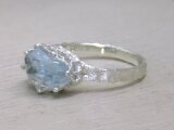みずみずしいアクアマリンを銀のレースで飾った925リング*レースそのものを銀に置換鋳造したものでレース素材によるテクスチャーも綺麗です**特有のクラックや僅かなインクルージョンもありますがランダムカットの個性的なルースによる1点モノをお楽しみ下さい*リングはアンティークマット仕上げ、10~20号(推奨サイズ)の範囲を目安に調整可能、サイズ確定後にレースで包むように石留め致します*通常黒化遅延処理を施しますが銀そのものの変化をお好みの場合は処理不要とお申し付けください*黒化防止ロジウムコーティングご希望の場合は承ります(別途1000円)