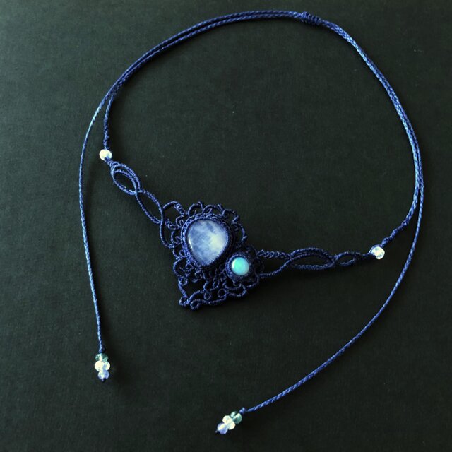 【マクラメ】〜 イロドリで遊ぶ 〜チョーカー1✩✩ブルームーンストーン&プレシャスオパール