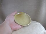 自作の型で抜いた小皿サイズのお皿に,底部はロクロでしっかり高台を作りました.手焼きせんべいのように曲がっていますが,再現できない味わいとしてご覧ください.黄色に茶を足した油揚げ風の2枚セットです.