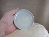 自作の型で抜いた小皿サイズのお皿に,底部はロクロでしっかり高台を作りました.手焼きせんべいのように曲がっていますが,再現できない味わいとしてご覧ください.薄青色の2枚セットです.