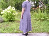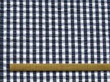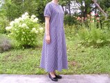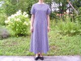 藍色×白ギンガムチェック(6㎜)の播州織サッカー生地を使い、爽やかな着心地のワンピースを作りました。