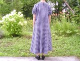 播州織コットン・サッカー生地*ゆったりシルエットのフレアワンピース*藍色×白ギンガムチェック